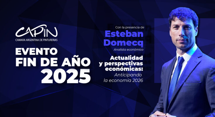 El martes 4 de noviembre de 2025 a las 18 h, la Cámara Argentina de Pinturerías (CAPIN) llevará a cabo su evento de fin de año en el Hotel Scala de Buenos Aires. La cita contará con la presencia del reconocido analista económico Esteban Domecq, quien ofrecerá la conferencia “Actualidad y perspectivas económicas: Anticipando la economía 2026”.