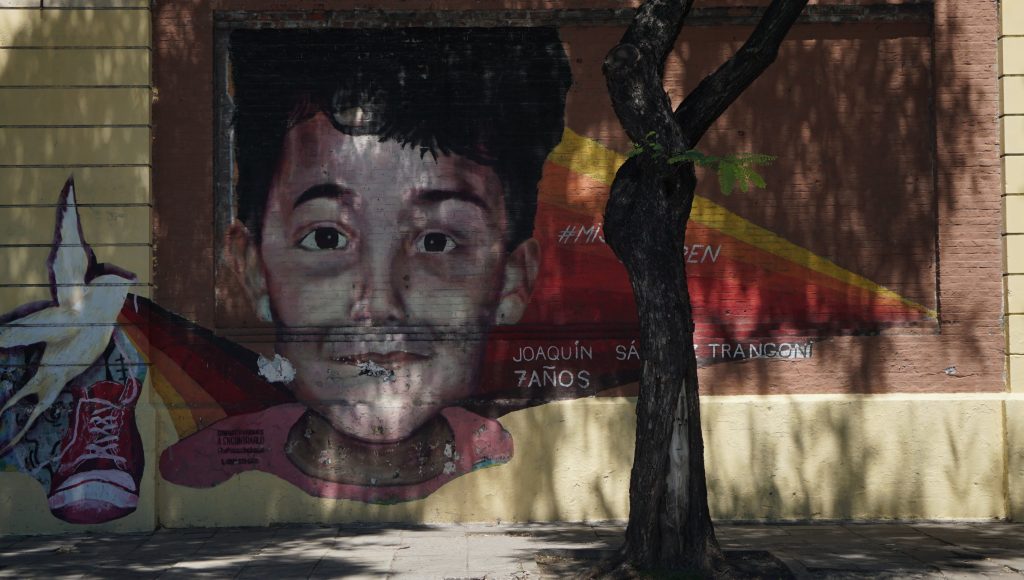 Mural en recuerdo de Joaquín Sánchez Tranconi, niño de 7 años perdido a la salida de la estación de tren 3 de Febrero: