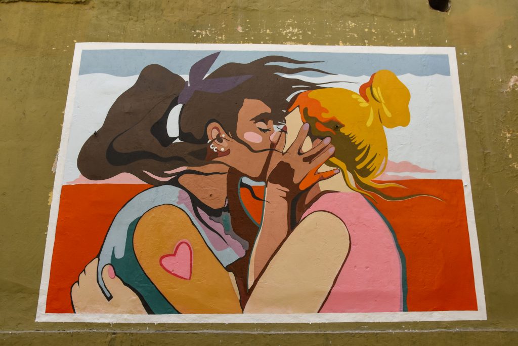 Ubicación: Av. Rivadavia y Esmeralda, Paseo de la Diversidad, Plaza Roberto Arlt. El mural “Un beso” fue inaugurado en el marco de la Semana del Orgullo BA. Artistas: @fernandotarica y @kim