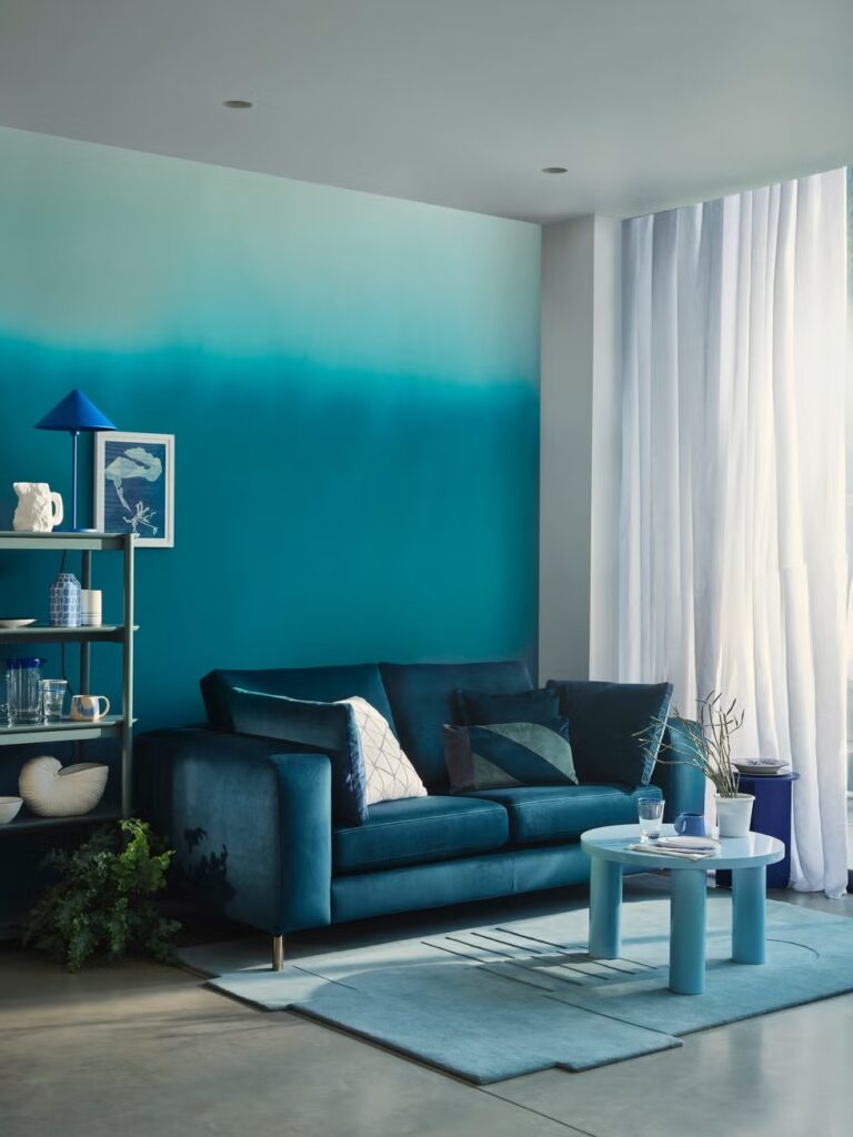 La arquitectura del ambiente también juega un rol clave. Si el espacio tiene molduras, estas pueden servir como guía natural para delimitar dónde termina un color y comienza el siguiente. En ambientes de paredes lisas, los cortes visuales pueden definirse de manera intencional, ubicando el tono más intenso a partir de aproximadamente dos tercios de la altura de la pared.